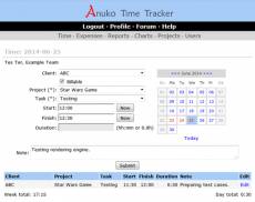 Ключевые слова: time, time tracking, time tracker, project time, work time, working time, work hours, working hours, timesheet, timecard, time report, invoicing, invoicing system, expenses, expense tracking Anuko Time Tracker is an open source, free, web-based work time tracking system, written in PHP. It is simple and very easy to use. It allows you to create user logins and organize them in teams, create and modify projects and tasks, input work time, generate reports and invoices and send them via e-mail. The application runs on Unixes, Windows, and Macs. It has three time tracking modes: time only, time by project, and time by project and task. The following plugins allow for extended functionality: charts - for visual diagrams of the time spent on projects and tasks, clients - for allocating time to clients, invoices - for invoicing clients, custom fields - for an additional text or a dropdown custom field to include with each time entry, expenses - to track expense items in addition to work hours. Free hosting of this service is available at https://timetracker.anuko.com in many languages.