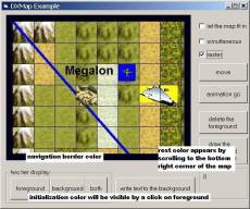 Ключевые слова: map, dx, directx, game, 2D, strategy, ActiveX, dxmap, animation, movie, icon, scrolling DXMap is a 2D graphical engine. It is a versatile and applicable tool that serves both static and moving representations. In particular the representation of maps in strategy games is supported (top down perspective). DXMap uses DirectX starting from version 7 for an efficient graphical display. A direct use of the DirectX interface becomes redundant by DXMap. A condition for the use of DXMap is the installation of DirectX starting from version 7. It was actually tested with DirectX 9. DirectX can be downloaded from the Microsoft Website (http://www.microsoft.com). DXMap provides the following graphical solutions, which also can be switched off alternatively: 1. Graphic representation of any size, which can be viewed completely with a scrolling mechanism. 2. Composition of several pictures with transparent ranges, that form a new picture as an overlay. 3. Representation of sequences, which result in a kind of film by being successively indicated. 4. Movement of bitmaps over the map area with an automatic representation of the way. 5. Distinction between fore- and background, so that first has the priority before the latter. 6. Evaluation of mouse messages. 7. Beside graphical representations also texts and lines can be displayed.