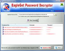 Ключевые слова: eagleget password, eagleget password recovery, find eagleget password, eagleget password tool, recover eagleget password, lost eagleget password, eagleget downloader password EagleGet Password Decryptor is the FREE software to instantly recover download site login passwords from EagleGet Download Accelerator. Here are the key benefits for you * Instantly decrypt and recover stored download site passwords from EagleGet Downlaoder. * Recover all stored passwords of any length and complexity. * Automatically detect EagleGet Password database file. * Easier and faster to use with its user friendly cool GUI interface. * Save the recovered password list to HTML/TEXT/XML/CSV file * Support for local Installation and uninstallation of the software. EagleGet Password Decryptor works on both 32bit & 64 bit platforms starting from Windows XP to latest operating system, Windows 10.