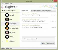 Ключевые слова: text-to-speech, tts, chat, game, voip, cow, talk, offensive, curse GiggleType uses text-to-speech (TTS) to output audio to any app that uses a microphone. Let your computer to do all the talking! There is no need for you to use a microphone or even say a word. Just start typing and GiggleType converts your message to text-to-speech audio. Your message can be automatically sent through Skype, Google Talk, online games and more. For added laughs, you can convert messages using various GiggleType filters: Cow - convert your message to cow-speak. Cussomatic - add sass to your message and let your computer swear like a sailor. Decussomatic - talk nice! Tame any curse-ridden message. Gibberish - various different filters can change your message into random and amusing blather. *** Warning! This program may generate offensive content.
