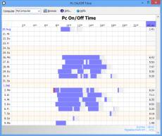 Ключевые слова: time tracking, activity, activities, track, mon, observe, log, logger, stealth, monitor, monitoring, analyse, use, control, capture, spy, user, time clock, supervise, supervisor, supervision, protocol, tracking PC On/Off Time displays usage time for your computer in a graphical representation over the period of three weeks without the need to begin logging. This is enabled by the use of a built-in feature of Windows OS. Features include the ability to display hours of operation allowing the user to view the times at which the PC was on, shut down or in standby mode. This free software also allows users to connect to PCs on a network to create log in and log off reports for them. Intended to be a timesheet tool, it allows users to plan a project and check up on the progress of others. Alternatively it can also be implemented at home where parents can keep a closer watch on the computer usage habits of children. Other problems that it may help identify include ties when the PC was accidentally left on thereby allowing you to conserve energy and ultimately reduce associated costs. Since the PC On/Off Time derives information from the event logs of the PC, it does not need to be run in the background at all times and take up valuable space. With no requirement for installation the software is entirely dependent on the event log embedded in the computer. This means that any missing information from your event log will result in incomplete data. The software currently does not record PC activities, require installation, write to the registry or modify files beyond its own directory. Other versions of PC On/Off Time include Pro and Net versions. These premium versions are not limited to three weeks and perform automatic backups. This means that they are not bound by the event log of the PC and provide complete information even if the event logs are lost or incomplete. It also allows the user to view the graphs of users on a particular network. It also allows you to export the log in and log off times on the PC. The correction of daylight savings time and lack of nag screens makes it user friendly for people looking for professional time tracking software.