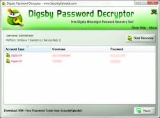 Ключевые слова: Digsby password recovery, Digsby password, Digsby password crack, decrypt Digsby password Digsby Password Decryptor is the FREE software to instantly recover stored account passwords from Digsby Messenger. Digsby is one of the popular instant messenger of recent times with IM client, Email Notification & Social Networking all in one software. Digsby has a multi protocol IM client that lets you chat with all your friends on AIM, MSN, Yahoo, ICQ, Google Talk, and Jabber with one buddy list. Here are the key features * Instantly decrypt and recover stored encrypted passwords by Digsby. * On successful recovery operation, messenger account type, username and password is displayed. * Right click context menu to quickly copy the Password. * Backup the recovered Digsby password list to HTML/XML/TEXT/CSV file * Easy and faster to use with its enhanced user friendly interface. * Integrated Installer for assisting you in local Installation & Uninstallation. Digsby Password Decryptor works on most of the Windows platforms starting from Windows XP to new Windows 10 version.