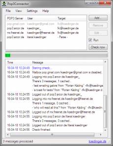 Ключевые слова: pop3, smtp, exchange, sbs, small, business, server, mail, connector, download, filter, imap, plugin Pop3Connector is designed to download mails from an unlimited number of POP3 mailboxes and relay them to any SMTP server, for instance Exchange Server, GMail, or any other mail server using the SMTP protocol. Leaving messages on the original server is supported, as well as SSL on POP3 boxes and SSL or TLS on the SMTP server. Initially designed as a replacement of the standard POP3 plugin that comes with Microsoft's Small Business Server (with all its limitations), Pop3Connector has some features that are hard to find anywhere else, and comes at an unbeatable price.