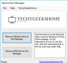 Remove Windows XP End of Life Message Utility. This utility can be used to remove the Windows XP end of life error messages that you get after you have installed the windows updates that apply them. Windows XP expired its support on 8th April 2014 and these warning messages can be very annoying. By using this utility you can remove them and stop them appearing again. Please ensure that you read the instructions on how to use this program fully before use. You can use this program to remove the Windows XP message and the Microsoft Security Essentials message.