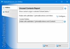 Ключевые слова: free, freeware, outlook, add-in, add-on, contacts, reports Have you ever wondered how many contacts in Outlook, shared mailboxes, Exchange Server, and Office 365 folders have been out of use in your email correspondence for a long time? Often, there may be many such contacts. For example, after you delete and archive messages or over time, contacts you no longer use appear. They accumulate and reduce your productivity and Outlook performance. This free report will help you quickly find out which contacts have not been used in your email messages, tasks, calendars, or other Outlook items for a long time. Key utility benefits: - Displays a simple list of unused contacts and a detailed report. - Looks for unused contacts in any of the selected Outlook and Exchange folders. - Shows the location of the contacts found, the number of uses, and the date of the first and last usage for the specified period. - Searches for email addresses in recipients, senders, and texts. - Allows you to save the resulting report to a CSV table file or copy it to the Windows clipboard for later insertion into Excel and other programs. - You can create the report directly in Outlook, separately from Outlook, and from the command line. To see a list of unused contacts, select folders with email messages or other Outlook, Exchange Server, or Office 365 items. These folders will be searched for email addresses from selected contact folders. If necessary, specify a date period and where to get email addresses when searching. In detailed mode, the report will show all the statistics you need: the contact's name, the number of times the contact was used in recipients, senders, and texts, the first and last usage dates, and the location of the contact folder.
