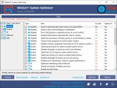 Ключевые слова: free system optimizer, free windows optimizer, free pc accelerator, speed up windows, system speed booster WinExt System Optimizer is a 100% FREE software. It can greatly improve system performance, speed and stability by optimizing the settings of start / shut down, stability, system, UI, network and SSD. Includes dozens of optimizing sub-functions, such as disabling drive defrag on boot to speed up start, closing frozen programs to avoid system crashes, etc. In addition, it supports to do (Un)checking all / recommending for features and result lists, and export result to txt/csv/xls/xlsx file. At last, this system optimizer just is a sub product of WinExt, the second one have many other features, sure, contains system optimizer.